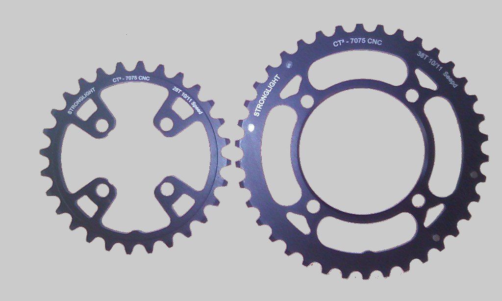 Aluminum indexed chainrings: 7075 T6 black anodized, CNC machined